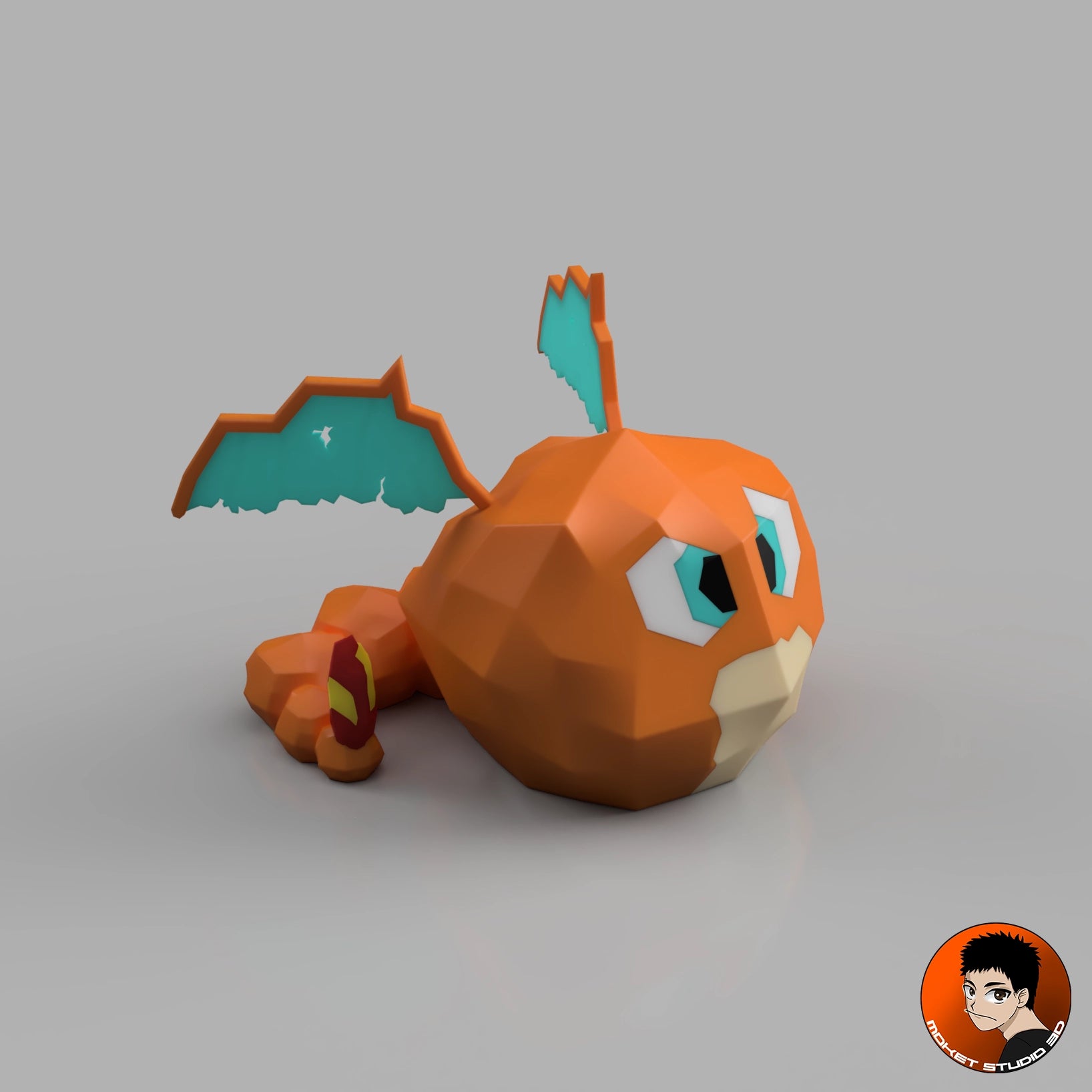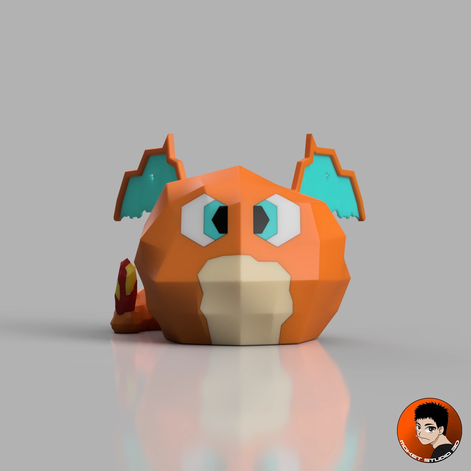 – Queue ornée d’une flamme stylisée rouge et jaune, héritage de sa lignée brûlante,